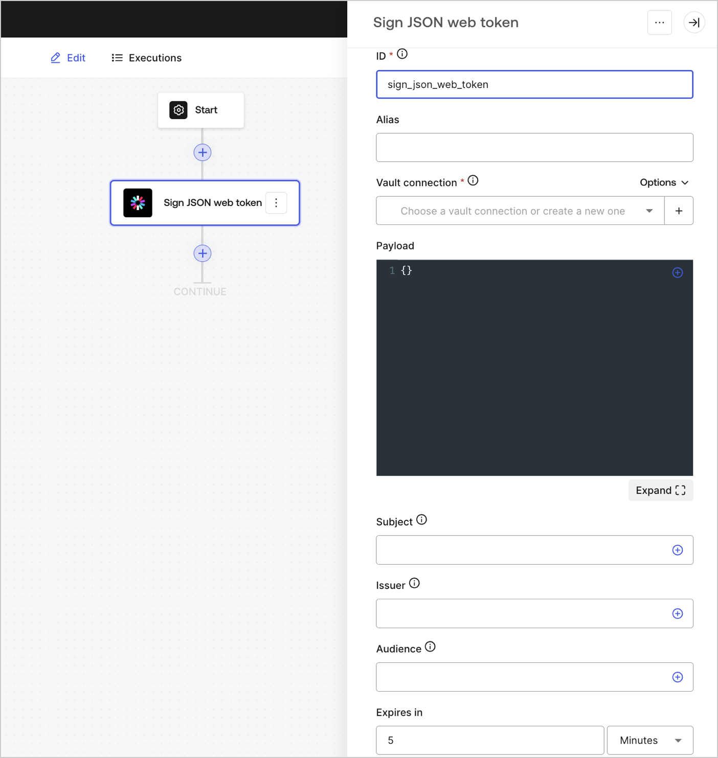 To configure a Vault connection for your JSON Web Token actions using HS256 algorithm, you will need a Secret:
