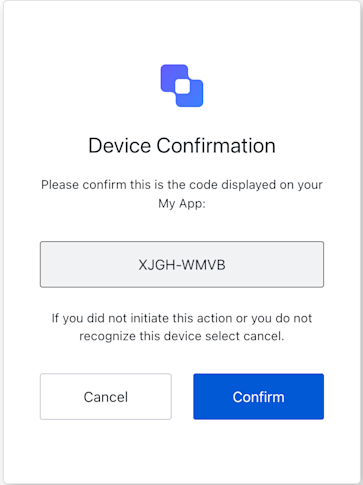 The Device Code Confirmation screen class provides methods associated with the device-code-confirmation screen. This screen is displayed when a user needs to confirm the device code.