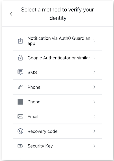 The MFA Login Options screen class allows users to select which MFA factor to use for login.