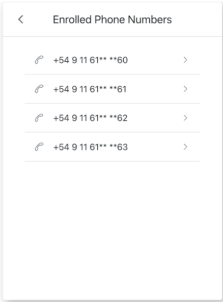 This method allows the user to select a phone number from the list of enrolled phone numbers.