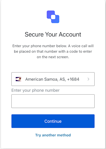 The MFA Voice Enrollment screen class provides methods associated with the mfa-voice-enrollment screen. This screen is displayed for a user needs to enter a phone number to receive a voice call with a code to continue enrollment.